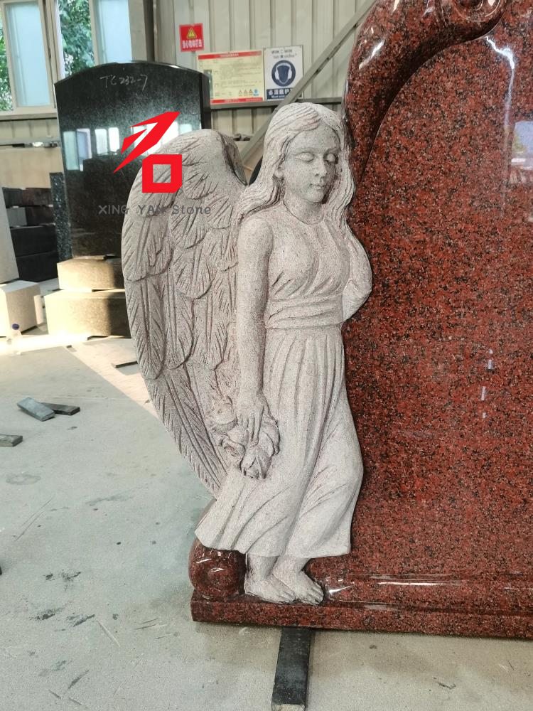 கைவினைத்திறன்: பிரதான கல்லறைக் குழு நன்றாக மெருகூட்டப்பட்டுள்ளது, இதன் விளைவாக கண்ணாடி போன்ற மேற்பரப்பு உள்ளது. இடதுபுறத்தில் உள்ள தேவதை சிற்பம் முப்பரிமாண செதுக்குதல் நுட்பத்தைப் பயன்படுத்தி வடிவமைக்கப்பட்டுள்ளது, இறக்கைகள், ஆடை அமைப்பு மற்றும் வெளிப்பாடு ஆகியவற்றின் நுட்பமான மற்றும் உயிரோட்டமான சித்தரிப்புகளுடன். கையால் மெருகூட்டப்பட்ட விவரங்கள் சூடான மற்றும் மென்மையான அமைப்பைக் கொண்டுள்ளன.