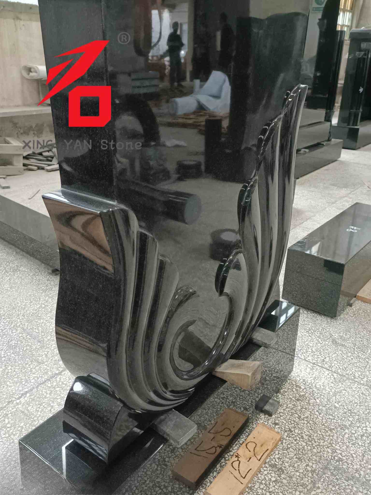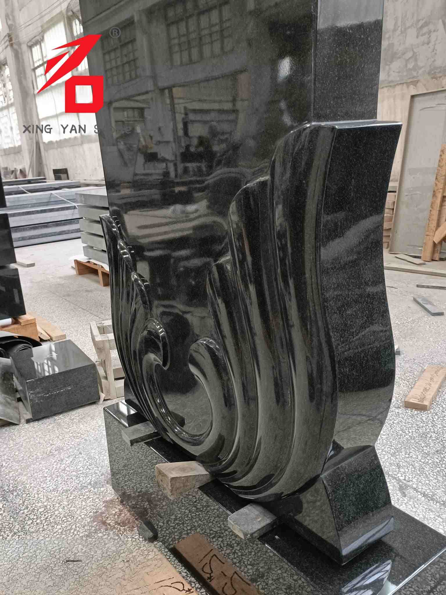 பொருள்: உயர்தர கருப்பு கிரானைட்டால் ஆனது, கல் அடர்த்தியானது, கடினமானது மற்றும் அதிக பளபளப்பானது. மெருகூட்டிய பிறகு, மேற்பரப்பு கண்ணாடியைப் போல மென்மையாக இருக்கும், வெளிப்புற வானிலை மற்றும் அரிப்புக்கு நீண்டகால எதிர்ப்பை வழங்குகிறது, கல்லறை எப்போதும் போல் புதியதாக இருப்பதை உறுதி செய்கிறது.