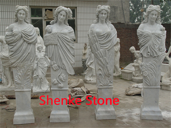 நான்கு பருவங்களின் கன்னி சேகரிப்பு வெள்ளை கல் தோட்ட சிலைகள் |