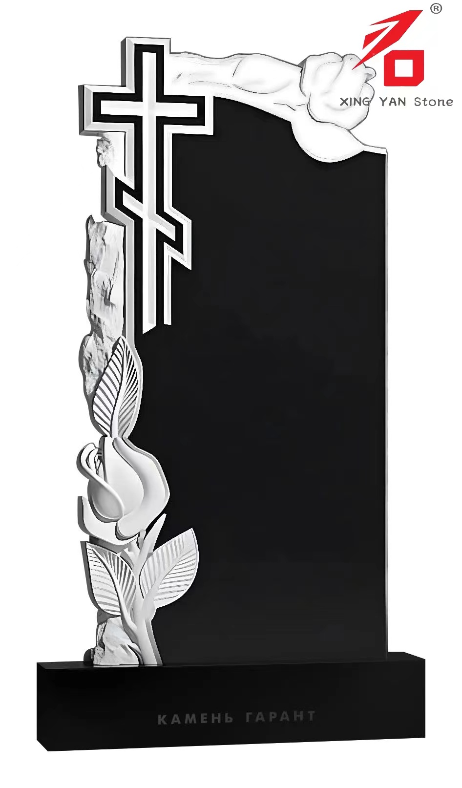 உணர்ச்சி வெளிப்பாடு. கருப்பு கிரானைட் நித்தியம் மற்றும் ஆழம், சிலுவை குறிக்கிறது